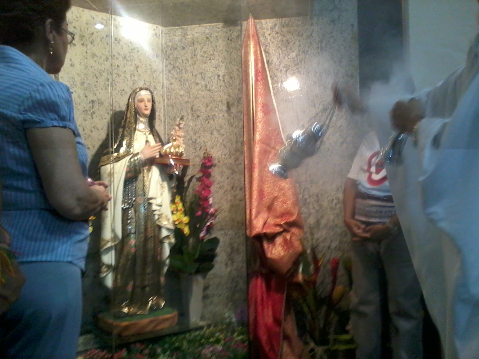 santuário próprio, em um lugar mais reservado no templo, cheio de flores e luz.